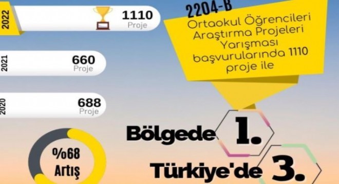 Öte yandan, TÜBİTAK Ortaokul Öğrencileri Araştırma Projeleri Yarışması'na Türkiye geneli 23 bin 968 başvurudan 1110’u Erzurum İl Millî Eğitim Müdürlüğüne bağlı okullardan yapıldı. Erzurum'dan bu yarışmaya 2018'de 86, 2019’da 96, 2020'de 688, 2021'de 660, 2022’de ise 1110 başvuru oldu. Böylelikle Erzurum proje başvuru sayısını bir önceki yıla göre yüzde 68 artırmış oldu.