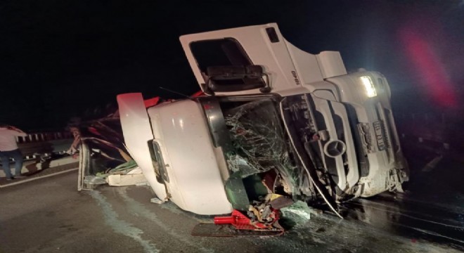 Bingöl’ün Genç ilçesinde kontrolden çıkar tır köprüde yan yattı. Yanmaya başlayan tır, itfaiye ekipleri tarafından söndürüldü.
