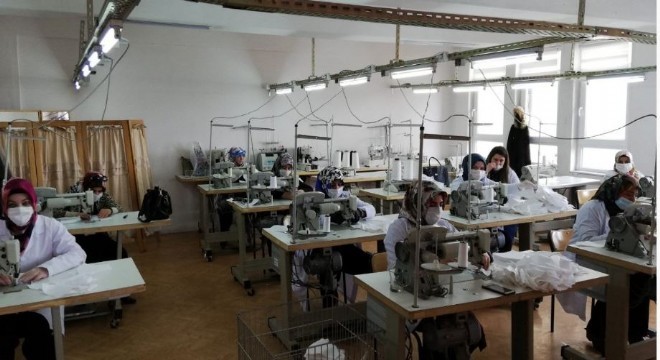 Erzurum İşkur İl Müdürlüğü ve Palandöken ilçe Milli Eğitim Müdürlüğü tarafından ortak protokolü ile Halk Eğitim Müdürlüğü bünyesinde maske dikimi aralıksız devam ediyor. Şuana kadar yaklaşık 100 bin büyük, 40 bin minik olmak üzere 140 bin maske dikimi yapıldı. Üretilen maskeler okullarda görevli öğretmenler ve öğrencilere ücretsiz dağıtımı gerçekleştirildi. Palandöken Milli Eğitim Müdürlüğü bünyesinde kurulan 4 atölyede üretilen maskelerin hammaddesi ise Palandöken Kaymakamlığınca temin ediliyor.